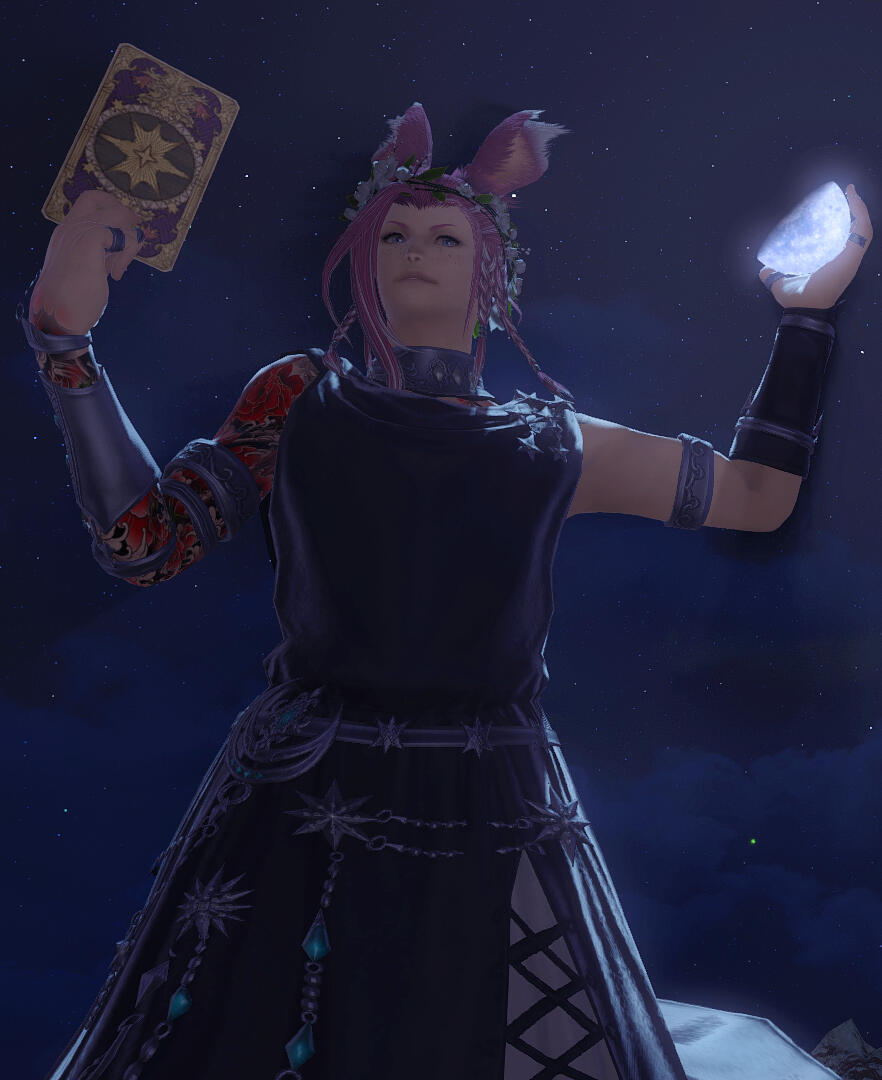Kanyo was born in the Skatay Range mountains of Dalmasca. At a young age, Kanyo was taught Alchemy to help his people. But he became fascinated with the stars above, and took advantage of his viewpoint to study them. One day, he witnessed Dalmasca's fall and the Garlean invasion from atop the mountains. Very few of his tribe made it out alive, him being one of them. He fled to Doma, moving far away from Dalmasca, there he came across the village of Namai in Yanxia. An older Auri woman that lived there, found Kanyo and adopted him as her own, raising him throughout the rest of his childhood. As he grew up, his fate still laid within the stars, and he took up Astrology, vowing to protect those who couldn't protect themselves.